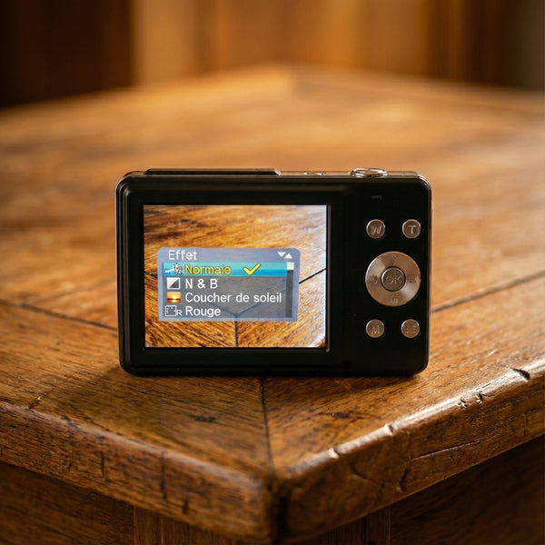 Écran LCD 4 pouces, résolution vidéo FHD 1080P, 44.0 mégapixels, Zoom numérique 16X, Batterie rechargeable via USB, emplacement pour carte TF (jusqu'à 32 Go), prise en charge SDHC classe 6/10, Langue : anglais, français, espagnol, portugais, allemand, italien, chinois
